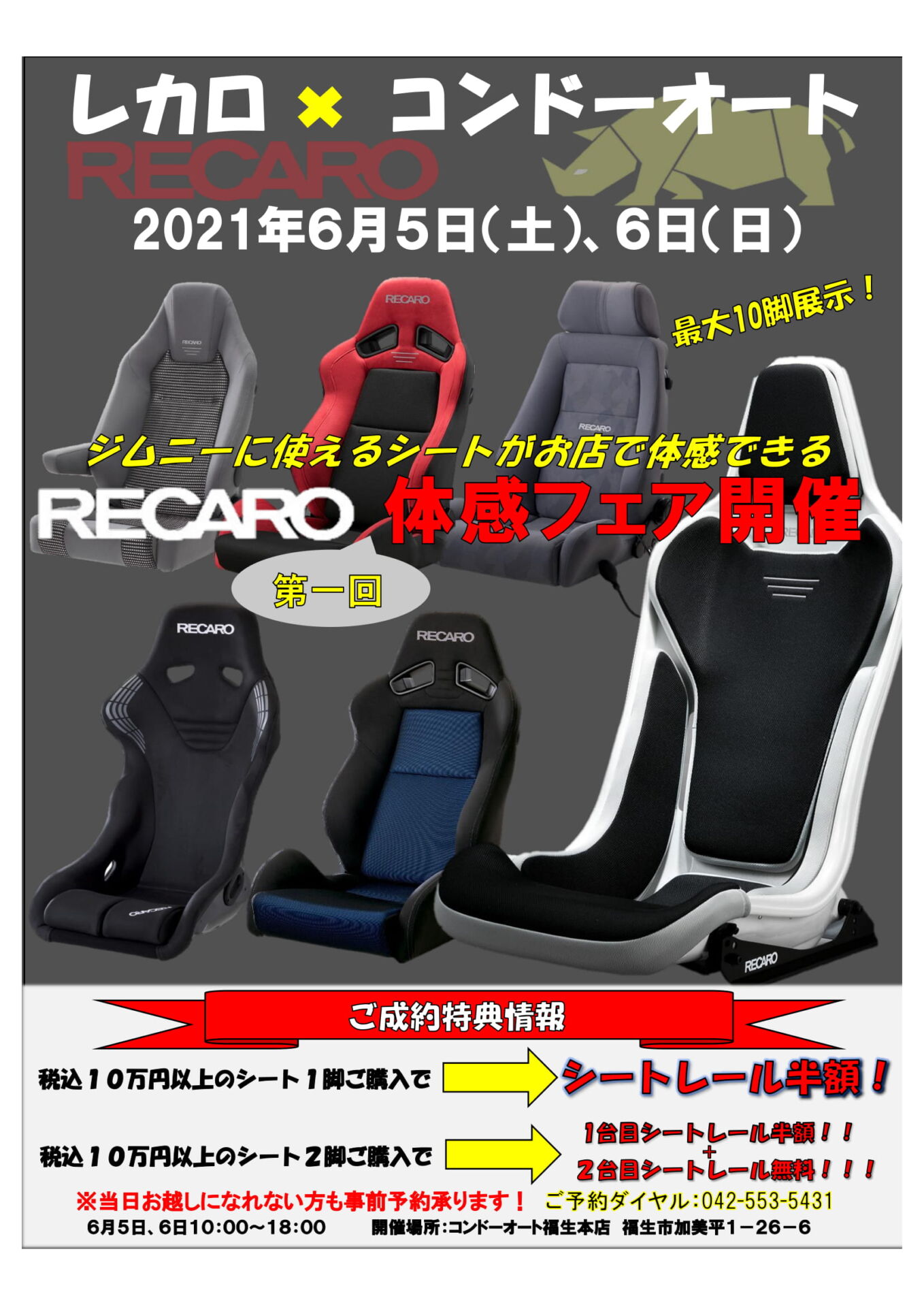 新型コロナウィルス感染対策をしっかりと行ったうえで、当日はレカロスタッフ、コンドーオートスタッフがご対応させていただきます。